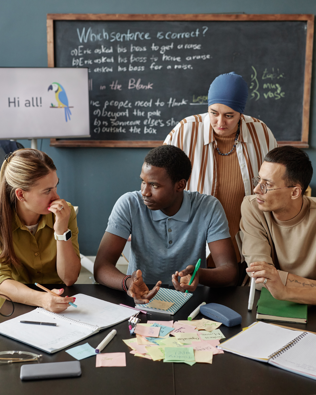 - Practise speaking and vocabulary with conversation and role-plays. Topics of interest are chosen for research, discussion, debate and task-based learning.